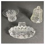 - 1 Fostoria Glassware Soap Dish, 1 Hat Topper, 1 Votive Candle Cup