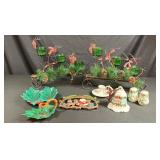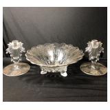 - Vintage Art Deco Florentine Pair Of Candleholders & Footed Serving Bowl