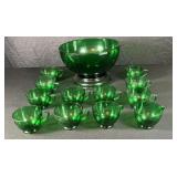 - Forest Green Punch Bowl W/Stand & 12 Cups