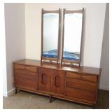 - "Mid Century" 9 Drawer Bassett Dresser W/ Double Mirror