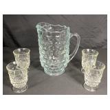 - 1 Fostoria Glassware Pitcher & 4 Juice Glssses