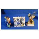 - 2 Porcelain Bird Figurines & 1 Vase