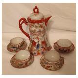 - Japanese Porcelain Tea Pot w/Set Of 4 Cups & Saucers