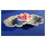 - Porcelain Turquoise Leaf & Pink Rose 2 Section Service Bowl USA