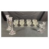 - 8 Desert Glass Dishes, 2 Sets Candlestick Holders