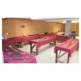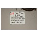 RIFLE GUN SOCKS, HOLSTERS, SNOWSHOES, TREE STAND. AMMO: 20 GA, .303 BRITIS, .30-40 KRAG, .32 COLT, .32 WIN. SPECIAL, .32-40 WIN., .35 REM, .222 REM, .25 REM, .303 SAVAGE, .30 REM, .38 COLT AUTO, .38 S&W, .25-06 REM, 9x18mm MAKAROV, .357 SIG, .270 WSM, .25 WSSM, .30 REM. AR, .300 WIN. MAG, 7mm MAUSER, 6.5x55 SWEDISH, .260 REM, .338 FEDERAL, 20 GA. 5 SHOT, .44 SPL/MAG 9 PELLET SHOTSHELL, 12 GA. 2 ¾” SLUGS, 12 GA. 3” MAG. SLUGS, .300 WIN. SHORT MAG., .357 HTP MAG, .30 CARBINE, .280 REM, .30-30 WIN. HVY, .44 REM. MAG, WINCHESTER BICENTENNIAL ‘76 30-30, .348 WIN, .300 SAVAGE, .218 BEE, .30 LUGER. (4) FISHING TACKLE BOXES FULL, FISHING LURES INCLUDING PFLUEGER, HEDDON, CREEK CHUB. (2) SHADOW BOXES OF 15 VINTAGE LURES, RIKERS CASE WITH 18 SPINNERS. VINTAGE WOOD/CORK BOBBERS. SPLIT BAMBOO FISHING RODS: 3pc+EXTRA TIP 9’ SHAKESPEARE #1362 WITH TUBE, 3pc+EXTRA TIP 9’ MONTAGUE “RAPIDAN FLY” WITH BAG & TUBE. OTHER FISHING RODS: ROD WITH PENN No. 49 REEL, ZEBCO ROD WITH ABU GARCIA AMBASSADEUR 5500 C13 REEL, ROD WITH PFLUEGER PAKROON #3180 REEL WITH WIRE LINE, 2pc 7 ½’ FENWICK FF756 FLY, 2pc. 6 ½’ FENWICK GF564. REELS INCLUDING A.W. GAMAGE LTD. 4 3/8” BRASS, ABEL No.2 FLY (blue), LAMSON FLY, ORVIS DXR 5/6 FLY. REMINGTON SIZE 9 CHEST WADERS, SERVUS RUBBER BOOTS SIZE 13, GLASS MINNOW TRAP, CREEL. SWORDS WITH SCABBARDS: GERMAN OFFICERS MARKED WKC (WEYERSBURG KIRSCHBAUM & CIE), REPRODUCTION CONFEDERATE MODEL 1840, FRENCH 1831 FOOT ARTILLERY BY TOLABOT-PARIS. SWORDS NO SCABBARDS: (2) GERMAN INFANTRY SHORT SWORDS, MODEL 1860 (DATED 1862) MARKED AMES. BAYONETS WITH SCABBARDS: U.S. M1873 TROWEL (FOR U.S. SPRINGFIELD TRAPDOOR), SCABBARD ONLY FOR M1917, U.S. SPRINGFIELD SOCKET FOR .45-70 CAL., U.S. SPRINGFIELD FOR 69 CAL MUSKET, U.S. SPRINGFIELD FOR 58 CAL MUSKET, (2) 1873 WINCHESTER, FRENCH 1874 WITH MATCHING NUMBERED SCABBARD. BAYONETS NO SCABBARD: U.S. M1873 TROWEL (FOR U.S. SPRINGFIELD TRAPDOOR), U.S.N. 1870 (DATED 1871 MARKED AMES), U.S.N. 1870 (MARKED AMES), (2) FRENCH 1874, SPRINGFIELD PATTERN 1807 SOCKET 69 CAL. SIDE KNIVES WITH SHEATHS: CATTARAUGUS #2250 FIGHTING, TIMBER RATTLER TR74 BOWIE, OLGA NELEK CUSTOM. SIDE KNIVES NO SHEATH: HENLEY & CO. 4 ½” FIXED SAWBACK BLADE. POCKET KNIVES: SCHRADE WALDEN PARATROOPER PARACHUTE AUTOMATIC BLADE. STANLEY & PLUMB HATCHETS, HAND FORGED VINTAGE BILL HOOK BRUSH AXE, VINTAGE LEATHERMAN TOOL WITH CASE AND BOX, LEATHER MAN “WINGMAN” TOOL. MACHETE: U.S. ONTARIO KNIFE CO. SAWBACK WITH SHEATH. GERMAN MILITARY: VINTAGE SIGNAL LANTERN. U.S. MILITARY: ARMY M1936 PISTOL BELT, (2) ARMY M1936 MUSETTE BAGS, ARMY G-P BAG (DATED 1945), ARMY 1983 LC-1 NYLON COMBAT FIELD PACK (RUCKSACK), WW1 M1916 37mm SHELL (US/FRENCH), M1910 CANTEEN, ARMY FOOT LOCKER, KOREAN WAR ERA CORPS OF ENGINEERS MINE DETECTING SET (C), WW1 M1918 1st ASSISTANT BAR BELT, WW1 M1918 GRENADE VEST MARKED MAY 1918 H.H. & Co., USMC PITH HELMET “HAWLEY PRODUCTS 1948”, ARMY OFFICERS VISOR CAP. HUNTING CLOTHING, L.L BEAN GUMSHOE ANKLE BOOTS (sz.11W), INTERCEPTOR TACTICAL BOOTS (sz.12). (2) ANTIQUE HAND FORGED ANIMAL TRAPS: 22 ½” & 29”. BULL WHIP, RIDING CROP, POWDER HORNS, CIVIL WAR CANTEEN, CIVIL WAR UNION SOLDIER TIN TYPE. BOOKS: (7) VOLS. PICTORIAL HISTORY OF THE SECOND WORLD WAR, “HELLS GATE” BY DOUGLAS E. NASH, SEVERAL WW2 RELATED BOOKS, (3) WINCHESTER BOOKS, 1950 LIFE’s PICTURE HISTORY OF WW2, “SIEG HEIL”. FRAMED ITEMS: KEN SCHMIDT 21x28 “THROUGH THE FIRE” PRINT, LT’D. ED. PRINT: LANDLOCKED SALMON BY R. LOOS, PRINT WITH LURE BONEFISH BY CAREY CHEN, PRINT MACKEREL SIGNED BY MIKE STIDHAM, WOOD INLAY TROUT FISHING.