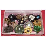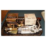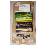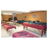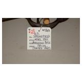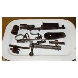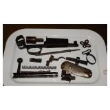 TAXIDERMY: HARTEBEEST (AFRICAN ANTELOPE) SKULL MOUNT, 7 AND 9 POINT WHITETAIL ANTLERS ON PLAQUES. BINOCULARS: JASON EMPIRE 7x-15x X 35mm, BURRIS 12x32. GUN PARTS: MAUSER RIFLE BOLTS, ASSORTED MAUSER RIFLE PARTS, ASSORTMENT OF REMINGTON BUTT PLATES, SCOPE MOUNTS, H&R “AMERICAN” REVOLVER GRIPS. MAGAZINES: MARLIN .22LR FOR GLENFIELD MODEL 70, ETC.., (2) M-1 .30 CARBINE (10 RD.) WITH CANVAS POUCH BY BOYT 1943, IVER JOHNSON ERMA M-1 CARBINE .22LR, (2) RUGER 9mm P85 (ALSO FITS P89, 93, 94, 95), (3) BERETTA 92FS-9mm. RELOADING: TUMBLER, GUN POWDER, PRIMERS (2017 SMALL PISTOL & 382 LARGE PISTOL), DIE SETS, 4 HOLE TURRET PRESS, AUTO. DISK POWDER MEASURE WITH TRICKLER, ACCULINE CASE TRIMMER. RELOADING BULLETS: 38 SPECIAL, 9MM, 40 CAL., 45 AUTO, 44 CAL, 35 CAL. TTSX FB, 22 CAL A-MAX MATCH, HEAD GAGES, (900) W209 WINCHESTER SHOTSHELL PRIMERS, 12 GA. WADS.