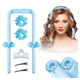 Heatless-Hair-Curler, Upgraded Segmented Design No Heat Silk Curls Headband for More Comfortable Sleep Overnight, Silk Curling Ribbon for Hair with Rubber Bands and Clips (Blue)