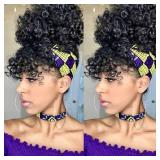 Afro Puff Drawstring Ponytail Bun with Bangs-Heat Resistant Synthetic Kinky Curly Ponytail Updo Hair Extensions with Two Clips, Curly Women Hairpieces Natural looking Afro Puff(#1B-Black)