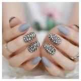 CoolNail Matte Gray Punk Style Press on Nail Fashion Gray Rhinestones Coffin False Nails Tips Artificial Frosted Fake Nail Art Pre-design