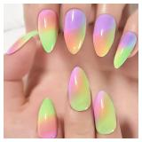 False Rainbow Nails Fake Nails Short Medium Coffin Matte Colorful Gradient Press On Artificial Nails Tips For Women Unas Postizas