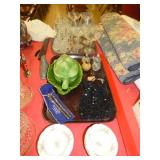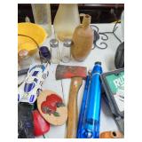 KEEP WATCHING FOR PHOTOS & LISTING!! gal. blue decorated crock enamel texas kettle towleware pieces coffee grinder copper kettle on legs turn of century fruit print in great frame 19th. c. transfer plates model ship hull teapot, creamer, sugar currier & Ives print "A Line Shot - The Recoil" crystal prints pottery face jug american fostoria world cookie jar slide rule soapstone horn box bennington mugs hull vase w/ label lady sculptures - neat signed & numbered Bob Allen Print "Turner's Store" stone jug aladdin lamp wooden puzzles costume jewelry s & p collection vintage lunch boxes fire truck peddle car glassware lots of pocketbooks - name brands tools pottery chicken marquis - waterford glasses hand made quilts WWII posters walnut marble top table oak rocker wooden pepsi crates wooden coca cola crates reebok neon light MUCH MORE - LOOK AT PHOTOS |