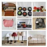 Shop this value auction for some great deals on everyday items. Nice collection of albums and 45's, purses, tables, lamps, and collectibles. Even a small Hammond organ. Enjoy!
