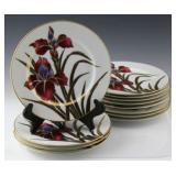 (12) FITZ & FLOYD IRIS BURGUNDY DESSERT PLATES, 43059
