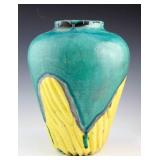 FRANCO MORETTI ORANGE & BLUE VASE SIGNED, 43090