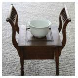 ANTIQUE WOODEN COMODE WITH CHAMBER POT, 43209