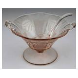 PINK PRESSED GLASS DISH WITH MATCHING SPOON, 43227