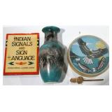 NATIVE AMERICAN VASE DRUM AND BOOK, 43235