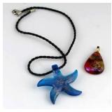 (2) GLASS PENDANTS WITH LEATHER CHAIN, 43249