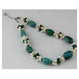 LADIES STERLING SILVER TURQUOISE & PEARL NECKLACE, 43259