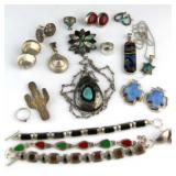 LARGE LOT OF STERLING JEWELRY MOSTLY MEXICAN, 43274