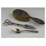 STERLING REPOUSSE BRUSH, SPOON, & TONGS, 43292