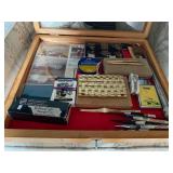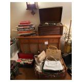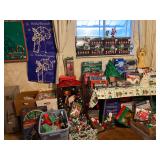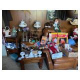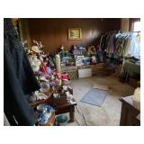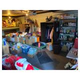 Assorted Pieces Of Furniture Including Sofa w/Matching Love Seat & Upholstered Chair, Dresser’s w/Mirrors, End Tables & Coffee Tables, Dining Room Table w/Chairs & China Closet, Slant Front Desk, Dry Sink, Drop End Gate Leg Table, Console w/Glass Sides & Front, Dinette Set w/(2) Chairs & Bench, Mahogany Corner Shelving Unit, Vintage Wood Double Glass Door Bookcase, Secretary, Solid Wood Dinette Table w/Four Chairs, Vanity Bench, Floor & Table Lamps Including Pair Of Stiffel Lamps, Brass Candlesticks, Collection Of Duck Figurines, Silk Flowers & Arrangements, Lenox China Figurines, Collection Avon Cape Cod – Some In Boxes, Capodimonte Vases, Figurines & Jardinière w/Pedestal, Jim Beam Decanters, Collection Of Old Country Roses Pattern Decorative Items (Few Signed By Michael Doulton) Including Tea Pot, Cookie Jar, Music Boxes, Two Tier Tidbit Tray, Angel Ornaments, etc., Collection Wedgwood Jasperware, Amber Fenton Glass, Vintage Set Franciscan Desert Rose Dinnerware, (8) Anchor Hocking Royal Ruby Tumblers, Asta Enamelware Pots & Pans, (2) Japan Dinnerware Sets, Barware Including Beer Steins & Mugs, Bar Utensils, etc., Portable Bar On Wheels, Stemware, Small Appliances, (2) Proctor Silex Coffee Makers In Original Boxes, Corning Ware, Bakeware, Ladies Costume Jewelry, Vintage Purses Including Plastic w/Seashells, Health & Beauty, Linens – Old & New – Some In Package, Vintage Hard Plastic Doll w/Clothing, Sewing Machine In Cabinet, Sewing Notions, Very Large Plush Snoopy & Battery Operated Bunny Rabbit, Books Including (5) Volumes Zane Grey, (9) Volumes Children’s Classics, Vintage Year Books – Brentwood High School, Vintage Brentwood High School Cotton Sweatshirt, Paper Ephemera & Old Photographs, Vintage Board Games, Collectible Pens & Mechanical Pencils, Many Office Supplies, Folding Chairs, Electronics Including Flat Screen TV, DVD/VCR Player – In Original Box, Vintage Realistic Three Cartridge Player, Vintage 16mm Movie Projector w/Tubes, Vintage RCA Victor Record Player, Vintage Polaroid Land Camera (Model 95) w/Case, Numerous Vacuums – Some Newer, (3) Military Bayonets (1) Rare Japanese All Have Scabbards, (2) Ceiling Fans – NIB, (4) Rowenta Irons All In Original Box, Tons & Tons Of Each & Every Holiday, Mostly Christmas Including Many Items New In Box – Light Up Deer, Fiber Optic Tree, Light Strands, Animated Figures, Yard Decorations, etc., Blow Molds, Ornaments, Lenox Nativity Set, Vintage Nativity Set w/Creche In Original Box, Linens, etc., Toboggan, Brass Coal Bucket w/Shovel, Lawn/Garden, Plastic Stacking Chairs, Wood Glider Bench, Aluminum Step Ladder, New Barbecue, Homelite Stick Saw, Lawn Mowers, Weed Wackers, Leaf Blower, Double Door Refrigerator, Whirlpool Washer & Whirlpool Electric Dryer