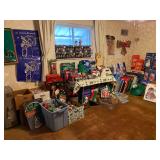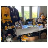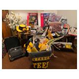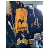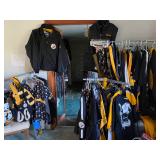Tremendous Amount Steeler’s, Pirates & Penguins Memorabilia Including Costume Jewelry, Jackets, T-Shirts, Suede Jackets, Leather Jackets, Raincoats, Hoodies, Pajamas, (L-3X), Cowboy Hat, Figurines, Pennants, Coffee Mugs, Book Bag, Lunch Box/Bag, Totes, (2) Lighted Wreaths, Hologram Roberto Clemente Card, Trading Cards, Plush Animals, Pair Super Bowl Tickets
