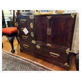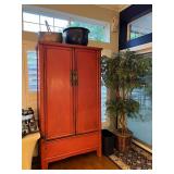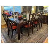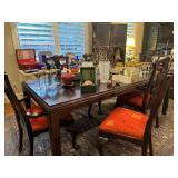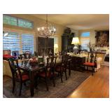 Furniture and Larger or Notable Items Asian-style formal dining set with eight chairs; hand-tied rugs; Century Asian chest; Asian screen; white Asian nightstand and bar or wardrobe; Craftwork Guild sofa; Asian TV cabinet; Samsung smart TVs; antique chest; custom upholstered chair and ottoman; Morren's custom chair; Asian-style glass-top dinette table; red Asian cabine