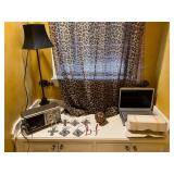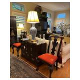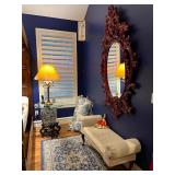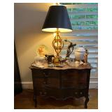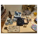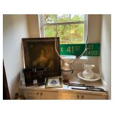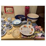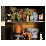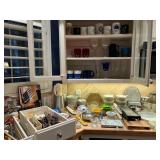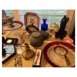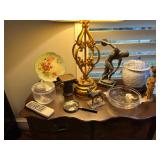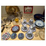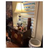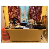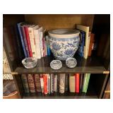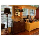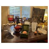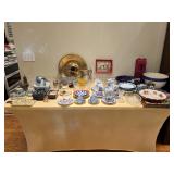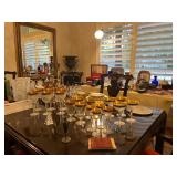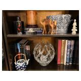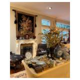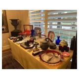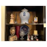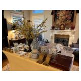 Ralph Lauren crystal vases; Lenox China; Shannon crystal; several decanters; cut-to-clear crystal; tea sets; library full of books; Sooner's yearbooks; costume jewelry; vintage games; quilts; pair of foo dog; lovely Asian décor and lamps; hand-painted China; fire poker set; fireplace screen; wall tapestry; server; faux tree; chest-of-drawers