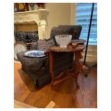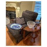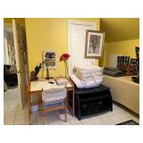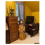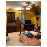 Bakers rack; recliner; round side table; library table or desk; wingback Barcalounger; wardrobe; easel; dressing mirror; garden seat end tables; king-size four-poster canopy bed; king-size adjustable Sleep Number bed; dressing bench;