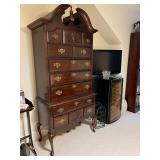 Lingerie chest; wine fridge; bookcase; Full-size poster bed; full-size mattress; settee; loveseat; leather chair and ottoman; drafting desk; dressmaker sewing machine; queen-size four-poster bed; draw-leaf table; drop-front secretary; wooden filing cabinet