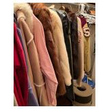 men's 2 and 3 XL clothes, OU gear, nice coats, size 13 shoes, belts; women's clothing in various sizes; women's furs; storage cabinets; puzzles; trunks; Christmas trees; wicker laundry baskets; luggage; child's art easel; TV stand; walkers