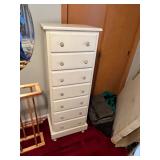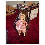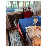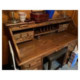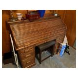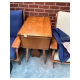 FURNITURE: 10 Pc. Dining room, 3 pc. Bedroom, Bedroom dresser, White bedroom furniture, Oak roll top desk, Sofa, Loveseat, Entertainment center, Child's antique rocker, Tall jewelry armoire, Nice 5 Pc. patio set, Antique table, Recliner, Tall white cabinet, Clothes drying rack, Kenmore sewing machine, TV trays & End tables.