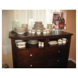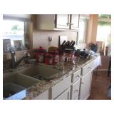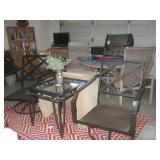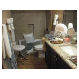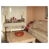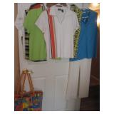 Reclining sofa & loveseat set; Tile/wood coffee table; Casual dining table with four chairs; Sleigh bed in King and Queen size; Dresser; Three sets of golf clubs; Patio furniture; Very nice men clothing (size L-XL 38-40) Nice ladies golf attire; Books; Area rugs; household items. |