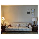 A vintage sale you won’t want to miss! 1960’s floral sofa in Excellent condition. Retro 1960’s glossy walnut round dining table with 4 chairs. A classic china cabinet with a matching walnut serving bar. A glossy walnut Credenza desk with chair. A hand carved Queen walnut bedroom set. A pair of beautiful vintage chairs. Unique wall sconces, and lamps. Rural America artwork on canvas by Andrew. Signed Vintage fruit still life by Zara. Signed Vintage Rustic barn artwork. Many other print, paintings and lithographs. Silver plated tea set, Wine Decanter. Kitchen rack, Christmas decorations. Glassware and crystal Murano glass figurines. florals and decorative wreaths. Stein mugs and New Schlitz beer glasses. 1920s antique cabbage board, rare vintage lighter in excellent condition by Ronson Varaflame Starfire. Candle holders, baskets, mirrors, kitchen ware, and small appliances. Silver ware, and cast iron cookware pieces. Vintage English wall decor, a vacuum, and hoover rug shampoo. Exercise bike, tools, a ladder, and leaf blower. Vintage torch for paint, shovels, rakes and cleaning supplies. Plus so much more!!