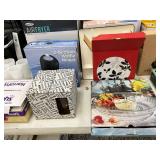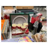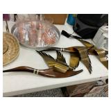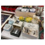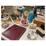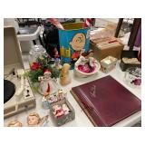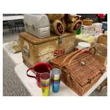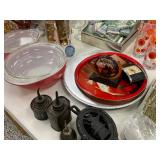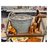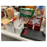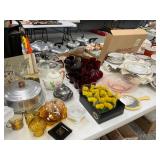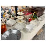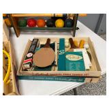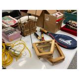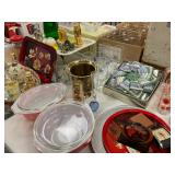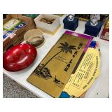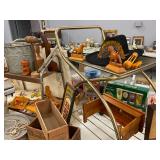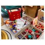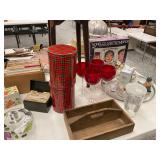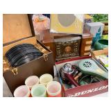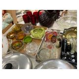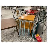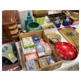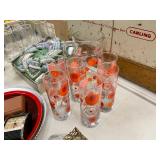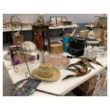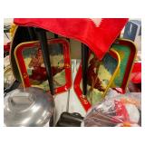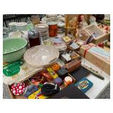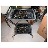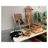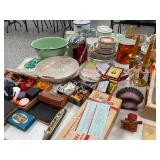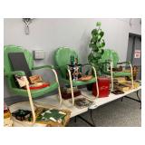 *MCM Collectibles- Tile top table, Lane Coffee Table, MCM Double Sided Bar Cabinet/Server, Serving Carts, Trays, Jarts, Sled, Shell Back Metal Lawn Chairs, Vintage Christmas, miniature Tinsel Tree, Linens