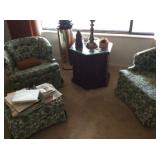 | This is a lovely condo has some comfy couches that compliment the retro glass tables and matching book case. Don’t miss this beautiful dining room set with hinged leafs and slate inlay and four matching chairs. Knick, knacks and glass and functional everyday dish sets. Nice small appliances. Artwork--DE Garza, fine art and Native American Indian portraits, some beautiful scenic farm scenes. Office desk and leather office chair. Check out this blast from the past rattan style bed set….a must see!! This is a sale you don’t want to miss. Inventory List: 5pc dining room set 5pc Rattan bed set Carved chair Indian rugs Retro phone Ship clock Two floral couches Bar stools Bookshelves Books Office desk File cabinet Leather desk chair Jackalope rabbit mount Artwork De Garza art Side tables End tables Vases Indian pottery Mantle grandfather clock Wall décor Jewelry Dolls Samsung flat screen 27” Quilt bedspread Retro bed set Rugs Kitchen small appliances Dishes Service for four dish set Floral print Wine rack China cabinet Brass coat rack Planters Floral matching living room chairs and ottoman Octagon shaped retro side tables Brass colored glass coffee tables Brass lamps |