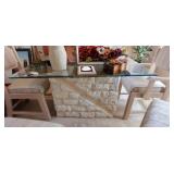 Thomas Kinkade Lithograph Hand-Signed Authentic Kachina Dolls Native American & Southwestern Themed Art Great Coffee Table Books Inc. Portraits From North American Indian Life By Edward S. Curtis & R.C. Gorman The Graphic Works Febo Flame Electric Fireplace LED Light Up Wall Mount ZHS-36-A (No Remote) - heat setting, works great Southwestern Decor Leather Cream Sectional Sofa By Emerson (Hickory, NC) Genuine Vintage Peach Catnapper 3 Piece Sectional Leather Sectional w/ Matching Swiveling Chair - light colored, great condition, great quality, very expensive new, rare color Peach Chair & Ottoman Faux Leather Recliner Chair - great condition, mocha colored, manual recline 2 Southwestern Coffee Tables Sandstone Slab Made To Look Like Live Edge Wood By White Mountain Sandstone Corp. (Made in the USA) Coffeetable / End Table 2 Native American Themed Tabletop Lamps Southwestern Area Rug Vizio Smart Flat Screen TV & Other Vizio Flat Screen TV 2 Pairs Binoculars Camera Brother HL-2280dw Printer Vintage RCA Expert Electronic Service Box Vintage MCS JC Penny High Fidelity Speaker 8209 Interior Doors - primed/painted w/ hardware, standard, hollow, great condition, left & right swing Custom Handcrafted Southwestern w/ Kachina Themed Hanging Pendant Like Lamps Southwestern Wood Window Shutters Valences & Blinds - great condition Southwestern Style Ceiling Fans Southwestern Hanging Interior Light Large Wall Mirror Custom Handcrafted Southwestern Kitchen Table & Other Southwestern Kitchen/Formal Dining Table Both w/ Decorative Pedestals & Glass Tops Southwestern Dining Table Chairs Southwestern Kitchen Bar Stools Wine Fridge By Avanti Stainless Steel Side By Side Refrigerator - works great Stainless Steel Dishwasher By Maytag Wood Privacy Screen Franciscan / Wedgewood "Desert Rose" Dish Set Dansk "Mesa" Dishware Set Corningware Bread Box Knife Set w/ Knife Block Smoker Talavera Light Sconce Sun Patio Wall Decor & Other Large Outdoor Wall Decor Terracotta Planter Pot Terracotta Yard Hose Container Outdoor Bench Drexel Vintage King 3 Piece Padded Headboard w/ Cabinets Behind Pads & Matching Low Profile Drexel Dresser Bed & Bath Linens Inc. Southwestern Themed 2 King Mattresses Southwestern Style Desk w/ Matching Chair - light wood |