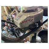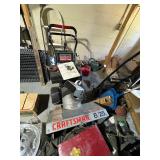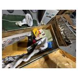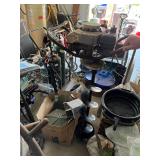 TOOLS: Large Ingersoll Rand air compressor Model SS3L3, Homelite generator w/ Briggs 7 Stratton 8HP engine, Central Machinery 5 speed wood lathe, Antique lathe, Lincoln Electric arc Welder AC-225, Welding tanks and torches, Industriline 12 speed drill press, Vice, Huskee 350 lb. Lawn mower lift, McCulloch 4.5 HP chainsaw, Craftsman saw, Chicago reciprocating saw 4.5 amps, High Flo gold series sprayer, Craftsman shop vac, Transfer punch set, Jiffy Ice drill Model 30, Bounty Hunter Gold Digger metal detector, Troy Bilt motor, Craftsman 4.5 inch angle grinder, Stihl FS 55 RC Weed whacker