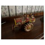 ANTIQUES & COLLECTIBLES: Queen of the Campus Engine Room tin toy, Vermont Valley train conductors hat, Lionel train, American Flyer train, American Flyer Ringling Bros. Barnum & Bailey whistling billboard, Vintage Erector set, Baseball and Sportscards, Butter churn, Hamilton clock, Antique accordion, Budweiser steins, Zenith stereo, Oil painting, Handmade quilts, antique doll and rag dolls, Harmony acoustic guitar, Tom Thumb toy cash register, Stoneware crocks, Victor adding machine, Fishing tackle, Coleman lantern, Vintage stamp albums, First day cover stamps, CDs, John Deere knife set, Lady Diana frame, Crucifix, Porcelain and glass, Christmas decor,