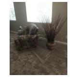 Yard art Dining room table Sideboard Wall art Artwork Grandfather clock Linen cabinet Large faux tree Glass top sofa table Faux plants Framed artwork Display cabinet Bench Kitchen table and chairs Metal giraffe Metal goose Milk can Bar stools Barrel chairs Metal artwork Powder blue upholstered chairs Square coffee table Grey sectional Glass and brass side table Brass lamp Teak patio furniture Planter Smoker and grill Patio table Media center Cream loveseat Armoire Queen bed and nightstands Hi boy dresser Rugs Bookcases Dresser with mirror Elk skull Bistro table and chairs Mission style rocking chair Futon Wicker chair Quilt holder Mirror Patio chairs Christmas decor And so much more
