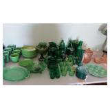 GREEN DEPRESSION GLASS AND OTHER GREEN GLASS ITEMS