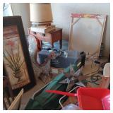 Included: XRT Club Car w/Dump, Antique Eastlake Hutch, Vintage Corner Cabinet, Antique Desk Lamp, Sexton, Rumtopf w/cups, Crystal Decanter w/mugs, Small Kitchen Appliances(Meat Slicer, Breville Juicer, etc.), 4 Bar Swivel Stools (like new), Nesting Tables, Beautiful Indoor Decor( Silk Flowers, Vases, etc), Black and White Tolle(most new), Small Wall Cabinets, Outdoor Furniture and Decor, Cantilever Umbrella, Basketball Hoop, Utility Trailer, Large Outdoor Storage, Curtains, Kids Bikes, Men, Women and Kids Clothing. Beautiful Outdoor Fountain. Still sorting!