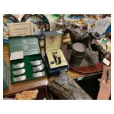July 23 rd. Auction Show starts at 5:30. Black Santa coin bank , good vintage, Concrete Black boy so neat! old Books , bookcases Tables Chairs, 1940s princess dresser, ARMOIRE FOR COFFEE BAR OR BAR, KITCHEN STORAGE Yuengling & Sons Brewers & Bottlers Framed Photo (1907), Paula Vaughn(Memphis Artist) print “Forever Friends” signed & numbered 67/125, Oil painting of flowers, Thomas Kinkade accent print “End of a Perfect Day”, old cotton scale & pea weight, Waterford picture frame, 1952 Southside H.S. Graduation picture,program & pictures(Framed), 1948 Fairview Junior High Annual, Very small oil painting of bird, Oil painting of street scene, Stain glass piece, 5 Cabbage Patch dolls, Reed’s nut cracker, Stack of XBOX games, Brass Swan planter, 1938 Hull pottery vase “Thistle pattern”, 1940’s Hull pottery vase “Crane pattern “, Green Pitcher, Fenton cranberry hobnail vase, Fenton opalescent hobnail oil bottle, Fenton silver crest basket, Large crystal vase, Signed pottery pitcher,Carnival glass footed bowl, ship in a bottle, Footed Pewter teapot, Ornate teapot,Nickel Silver teapot, Old Spice decanter, Meerschaum pipe, Oriental plates, Russian plates, Collector plates, Arthur Court pieces, Planters Peanut sign, Beefeater Tray, 4 different Coca Cola trays, Blue jar of marbles, Willow Tree figures, 5 Civil War books, Box of old games, 25 shot glasses, cast iron skillets, 2 toy tractors, Pyrex covered bowl, Coca Cola thermometer, Old Alaska/Eskimo tablecloth & napkins, 3 laundry metal signs, Waterford Crystal bowl, Lace & Linen tablecloths, 4 metal signs, 4 Lenox pieces, Signed miniature baseball bat(Mickey Vernon 1930’s&40’s player), bag of 45 records, book of 78 records, Bob Wills & Texas Playboys 4 record set, Southwest pottery oil bottle, 4 sample Bordeaux Wine decanters from France, Oriental Box, old washboard, 3 Coca Cola tip trays, Large metal letter J, Binoculars & case, 3 old metal cars, 2 University of Alabama pictures, 2 advertising pictures,old picture of young boy, Southern Belle picture. |