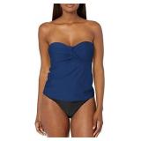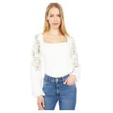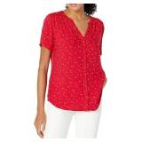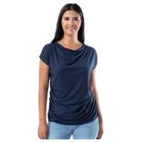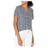 Lucky Brand Women's Puff Sleeve Ruched Square Neck Top, American Navy, XXL
