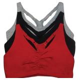 Fruit of the Loom womens Adjustable Shirred Front Racerback Sports Bra, Red Hot/Black/Heather Grey - 3-pack, 34 US