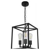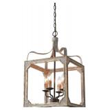 Lovedima 4-Light Lantern Pendant Lighting Square Wood Metal Chandeliers Hanging Light Ceiling Light Fixtures in Antique Gray & Antique Gold (4-Light