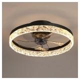 Voltage 110V-120VNumber of Lights 1-LightColor BlackStyle ModernMaximum Bulb Wattage 30 to 49 WattsMaterial MetalSize Up to 20 InchesFeature Integrated LEDMounting Type FlushmountNumber of Blades 5Fan Blade Color ClearColor Temperature Third Gear DimmingProduct Type Flush MountOccasion Residential UseCrystal Component NoAdjustable Hanging Length NoSwitch Type Remote and Wall ControlBlade Material ABS Plastic