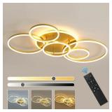 Modern LED Ceiling Light 106W Dimmable LED Acrylic Ceiling Lamp with Remote Control 6 Rings Flush Mount Ceiling Light Gold Ceiling Chandelier for Living Room Dining Room Bedroom Kitchen (5+1G01)